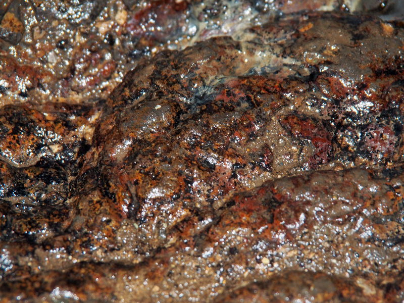 洞窟の肌は崩落を繰り返しているので、表面の溶岩の流れは下部にしか残っていない。